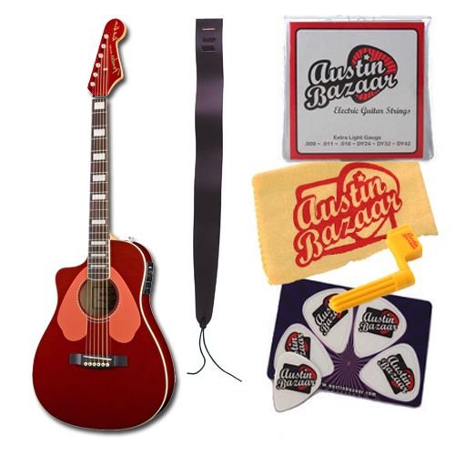 Fender Dick Dale Signature Malibu SCE Cutaway Acoustic-Electric Guitar Bundle with Leather Strap, Strings, String Winder, Pick Card, and Polishing Cloth - Surfin' Red, Left Handed Reviews